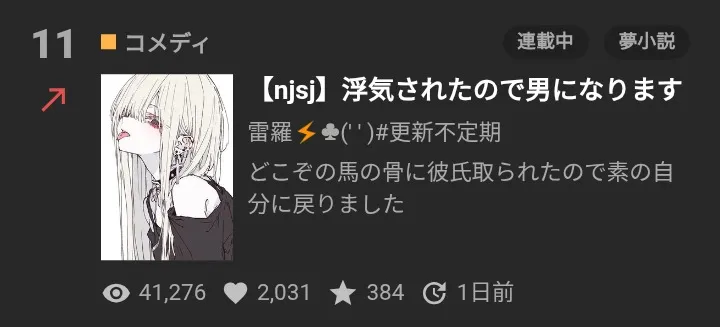 総合デイリーランキング 14→11位