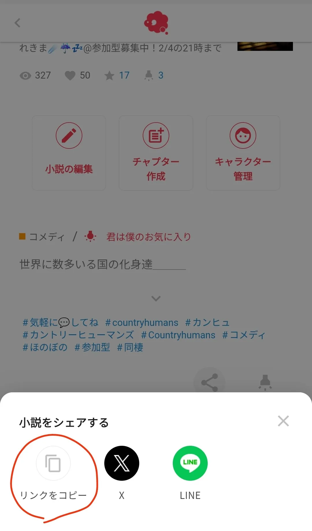①設定を書いた小説の編集画面のここ押す