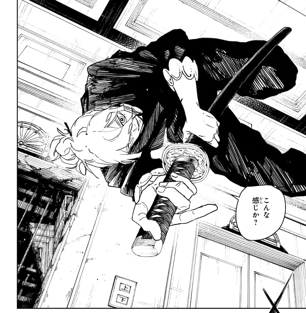 刀を手の中で半回転させなければならない