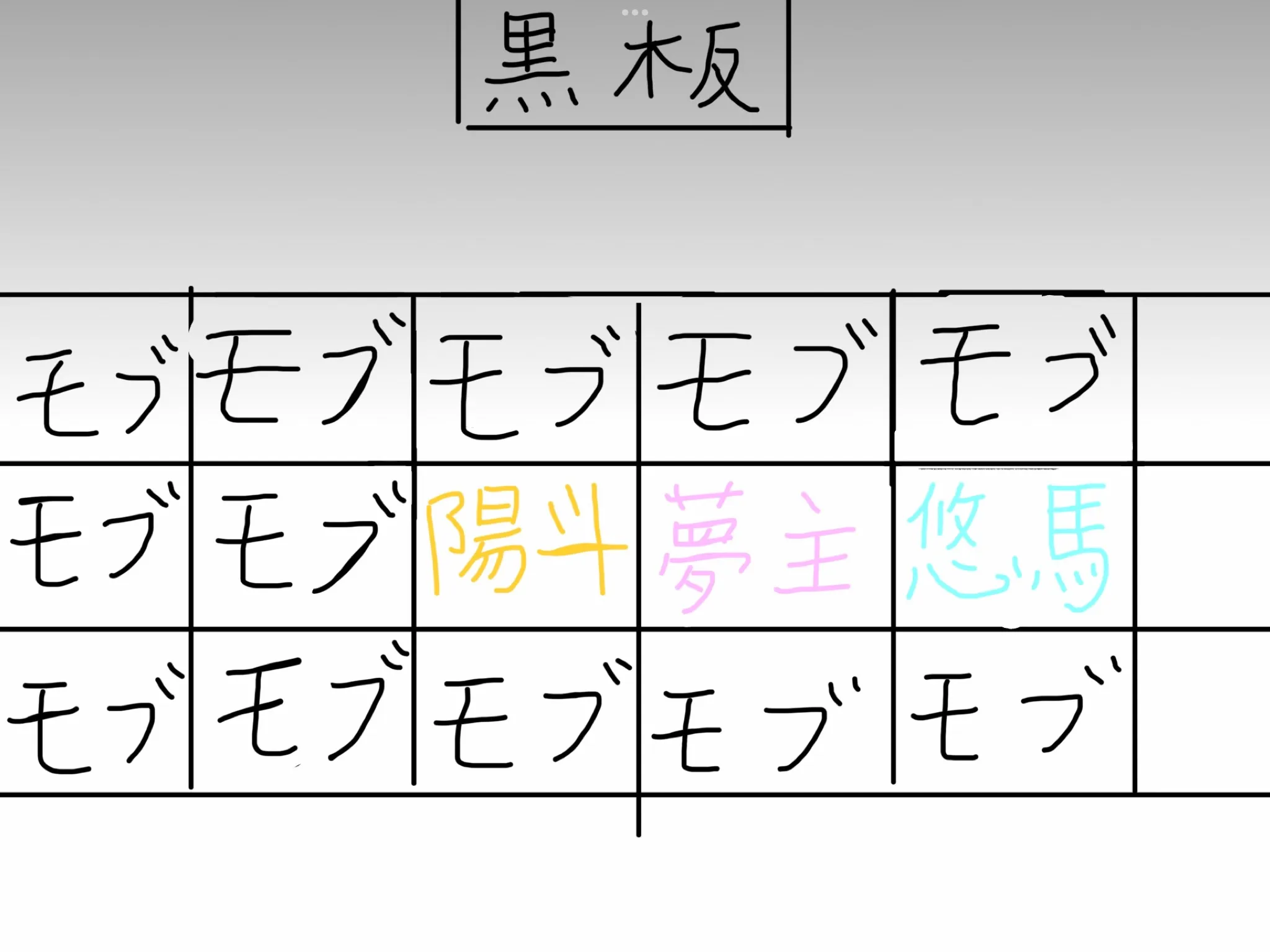 教室来た時気づかなかったけど黒板に貼ってあるよ!