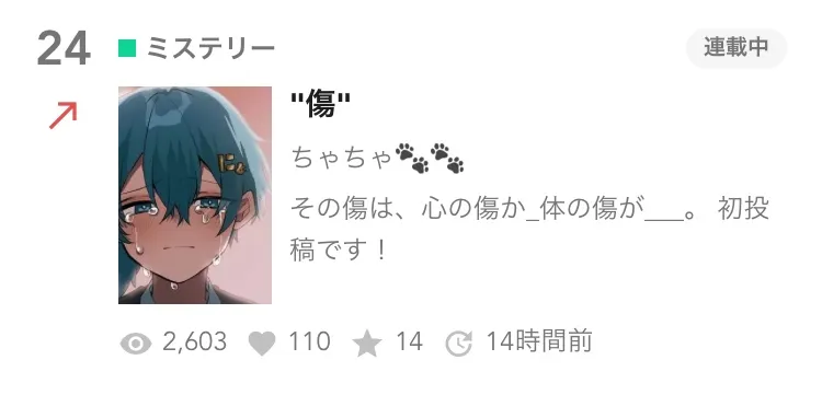 ちなみに1日目は、回覧数9、お気に入り登録が2人でフォロワーも2人でした‼️