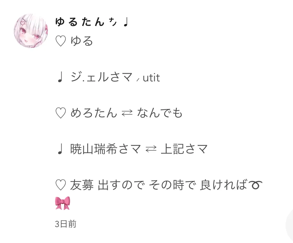 枠交換もありがとうございます ˘- · -˘ ♡
