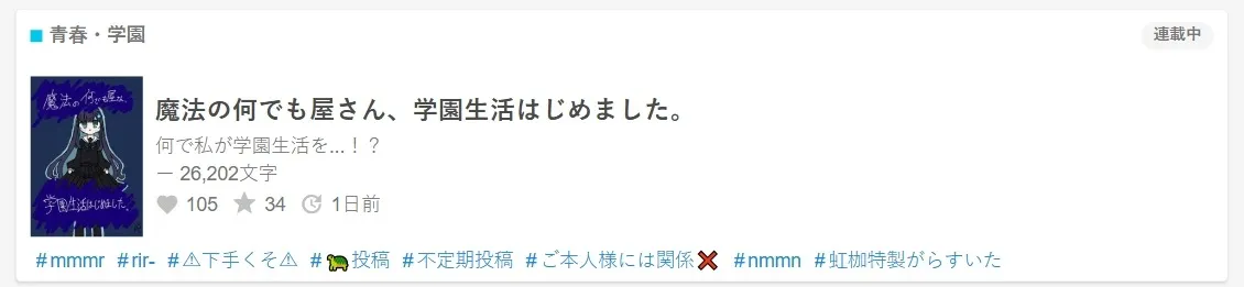 こんにちは、作者の虹枷がらすと申します。