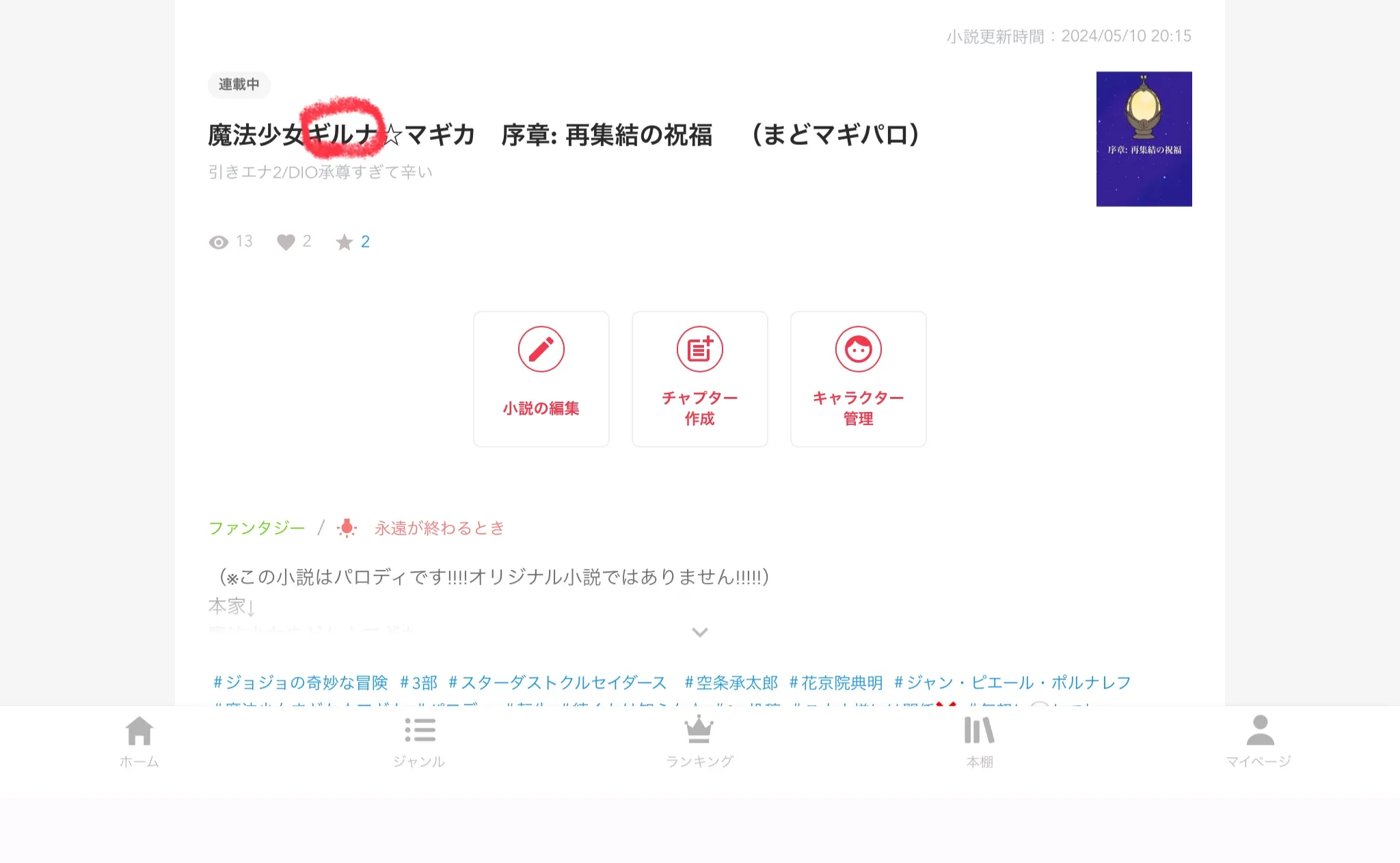 「空条敘莉華」と「花京院美波」の小説、ココにあります