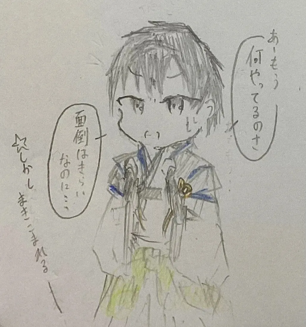 初めて本気で絵を描く。1ページ使ったの多分何気コレとさっきの筆殺奥義せんせーだけ