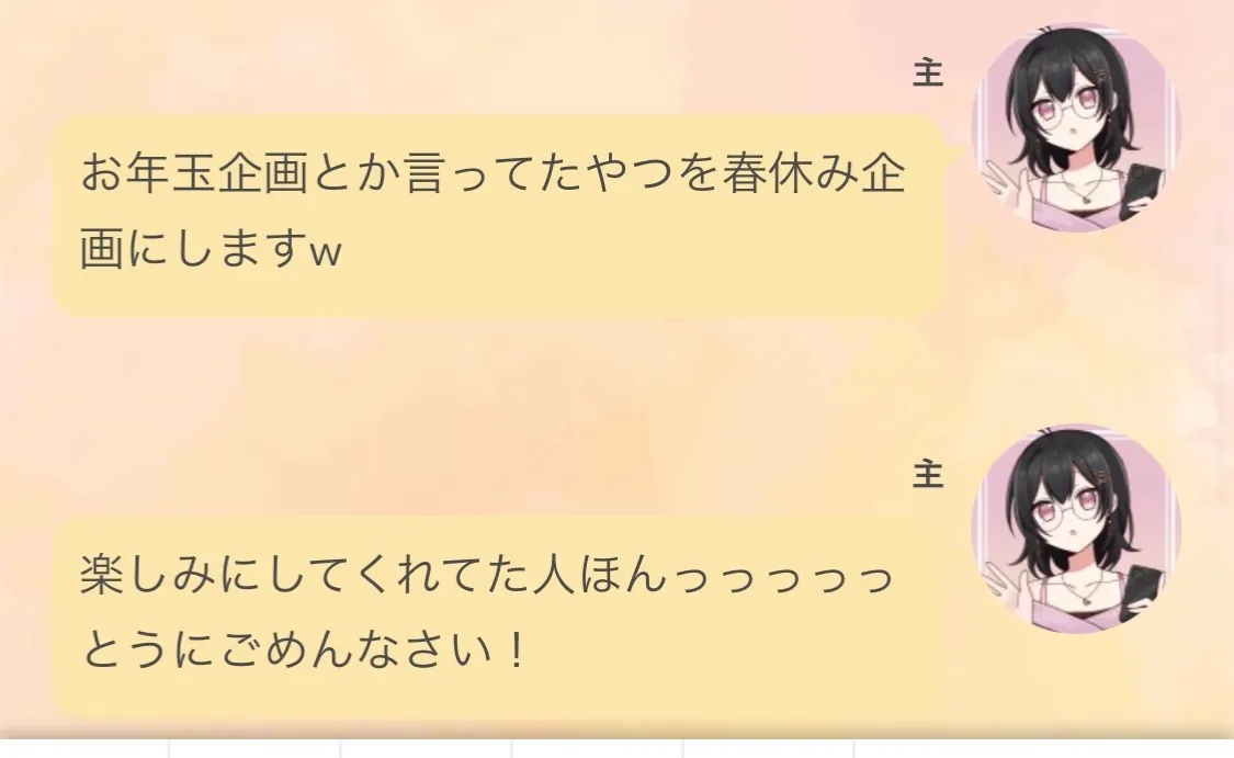 わかった、じゃあみんなに言っておきまs(((おくね
