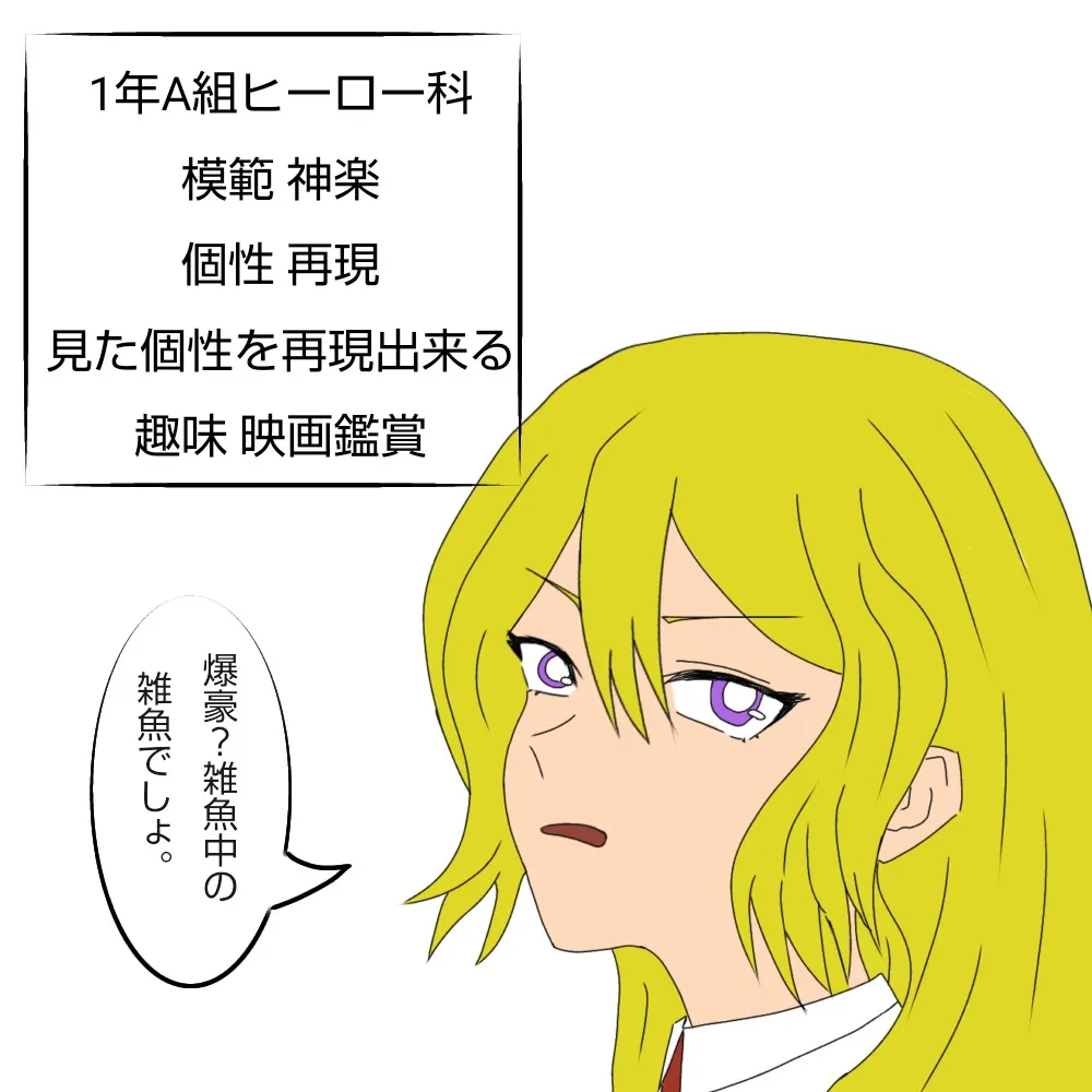 個性:夢野久作の小説ドグラ・マグラより胎児の夢 胎児の夢を知らないと何これ、となるかもしれませんが、精神干渉系だと思ってください 太宰との賭けに負けて自殺。 と思いきや個性を持って生まれ直す ヒーロー志望ではないけれど、面白そうなので雄英に入る めちゃくちゃな少女の話