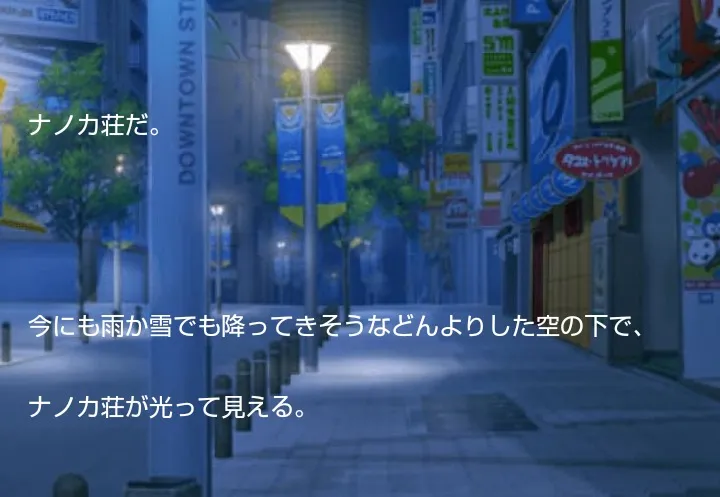 ここで既に、「ナノカ荘周辺」と「外」は違う次元にあることを暗示したかったらしいよ