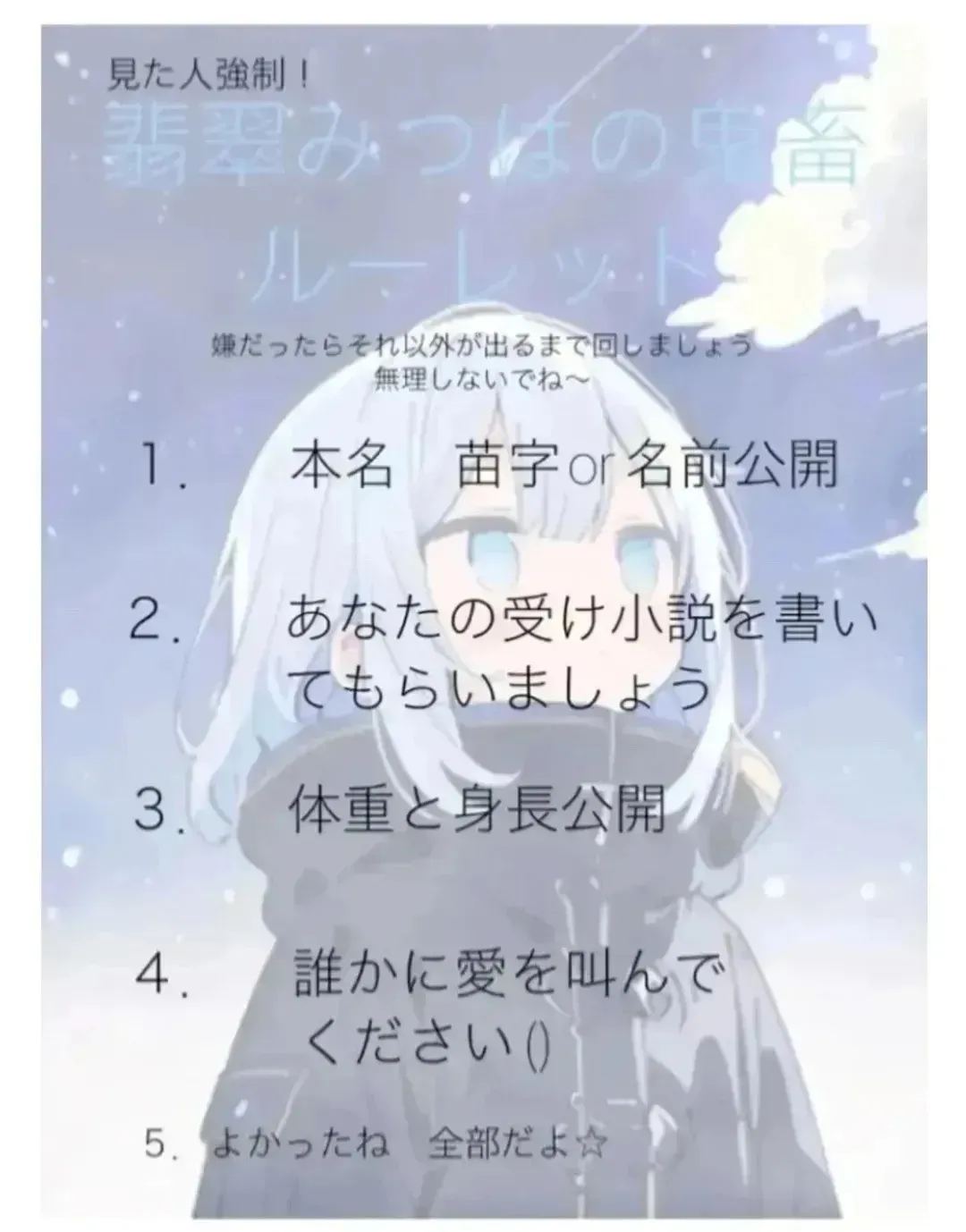 1、本名名前公開は流石にきついので名前一文字だけな