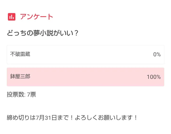 アンケート答えてくれてありがとうございました!