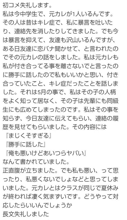 そもそも付き合っていて暴言吐くとか連絡先消すのとかしていて自分は何もされないと思っている元彼さんの思考が私にはよくわからないのですが…