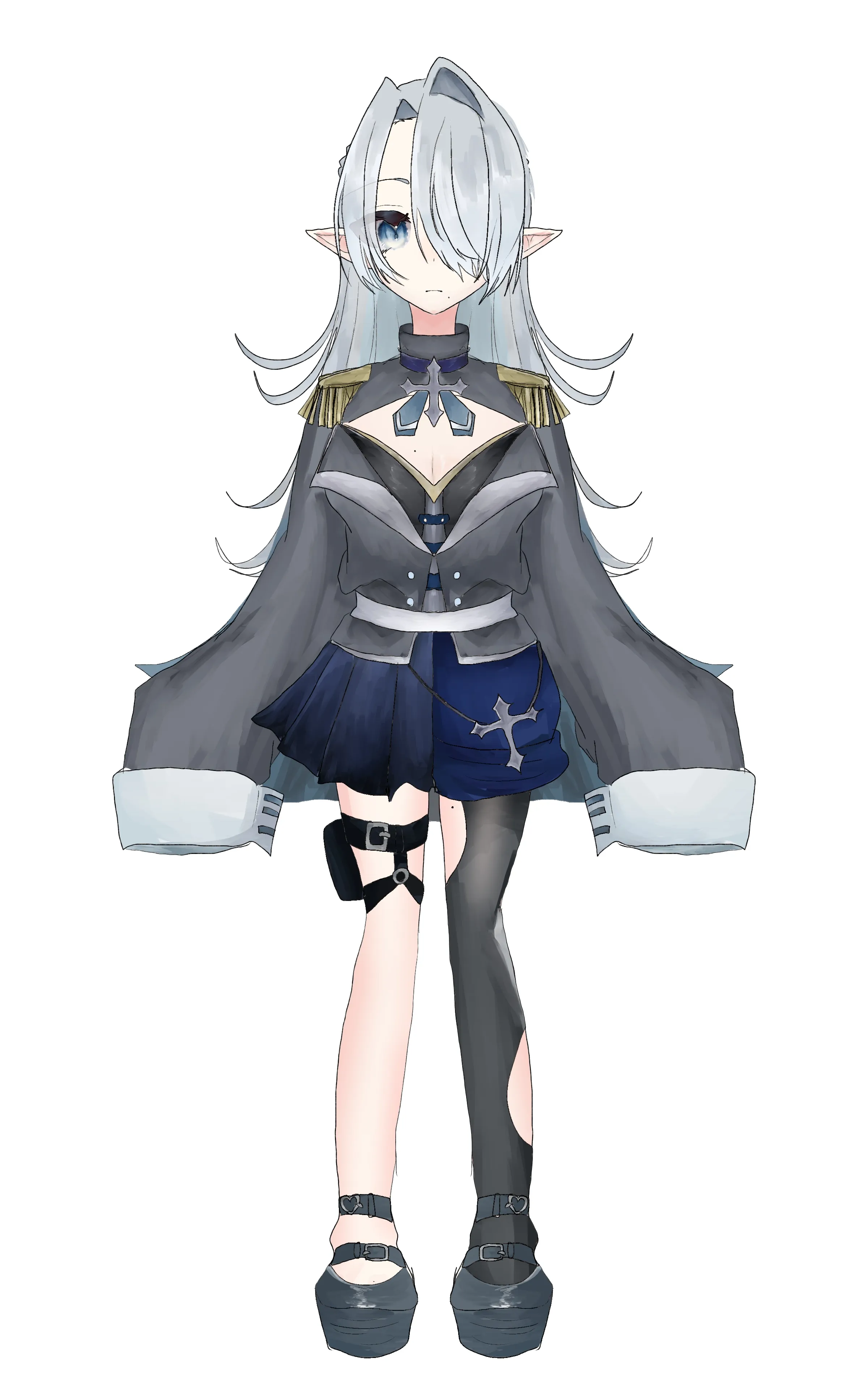 片目が隠れているがオッドアイである。