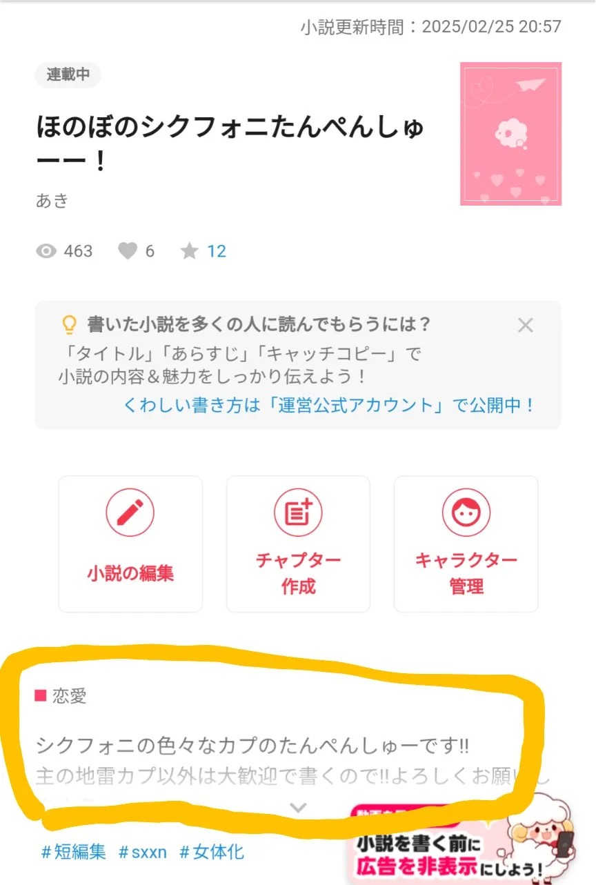 - 小説詳細ページ下部