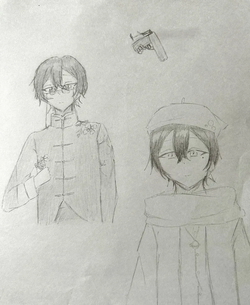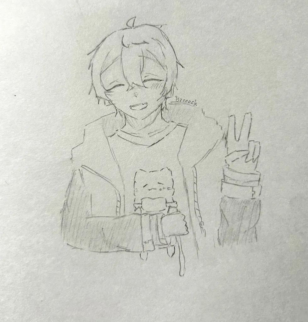 手に持ってるのクローバーなの銃が描けなくて諦めたもんな