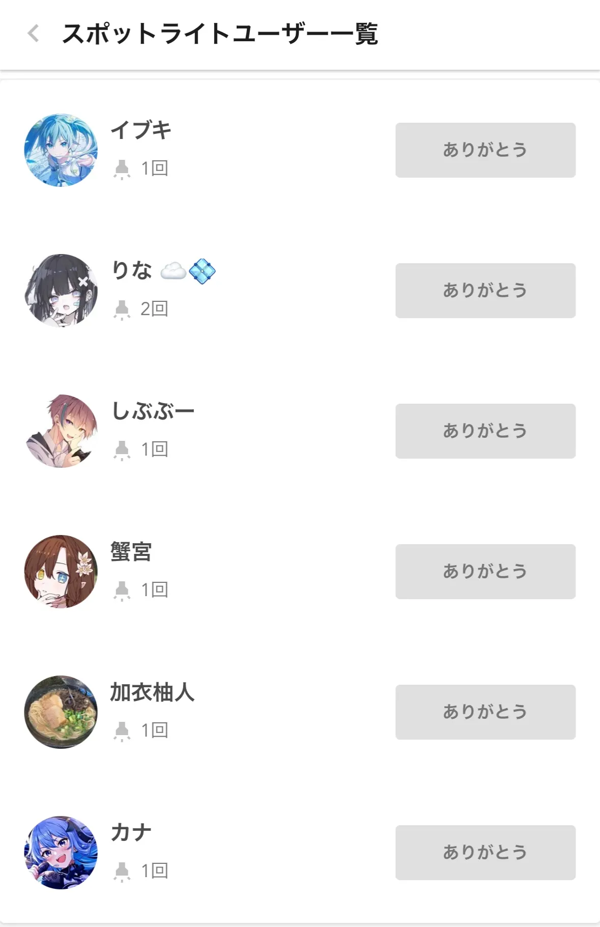 スポットライトユーザーランキング
