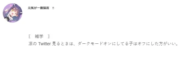 凛の Twitter 見るときは、ダークモードオンにしてる子はオフにした方がいい。