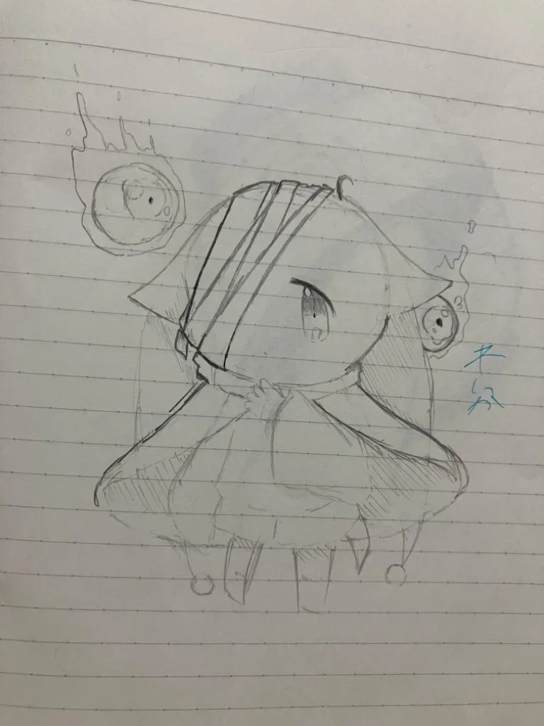 最後らへんの空髪の子の元々はスマホのメモ機能に描いたやつなのだ