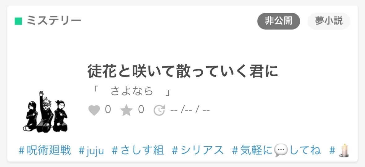 お兄ちゃん、貴方の教えてくれた場所、 アル中イケメンが殺しあいしてんだが()!? パクリ、参考NG 🖋️〜12月9日〜 夢主出る話、最初のほうは少ないかも 1月5日 デイリー コメディー 184位 1月10日 デイリー コメディー 164位 1月12日 デイリー コメディー 162位 1月15日 デイリー コメディー 160位 ☆60突破 1月24日 デイリー コメディー 137位 ☆90突破 1月26日 デイリーコメディー 72位☆100突破