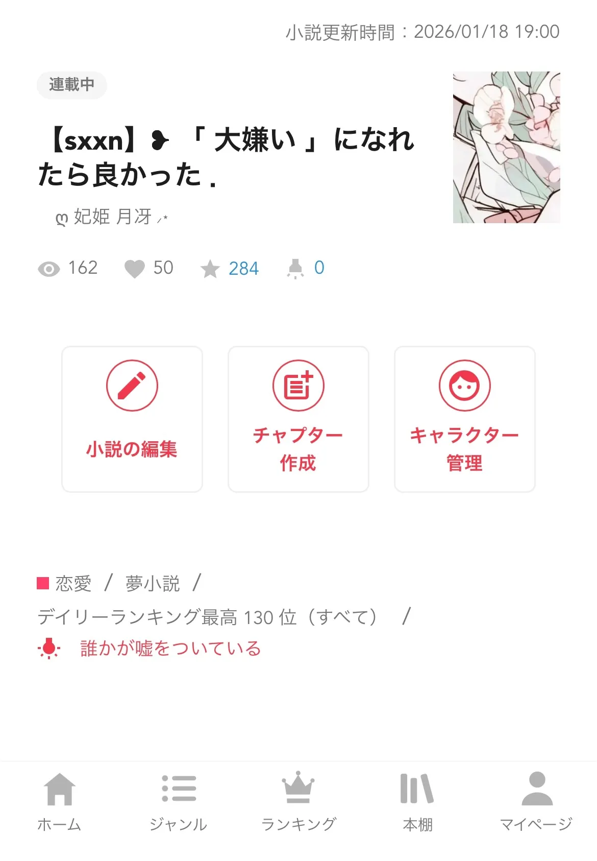 デイリーすべて130位、恋愛38位、