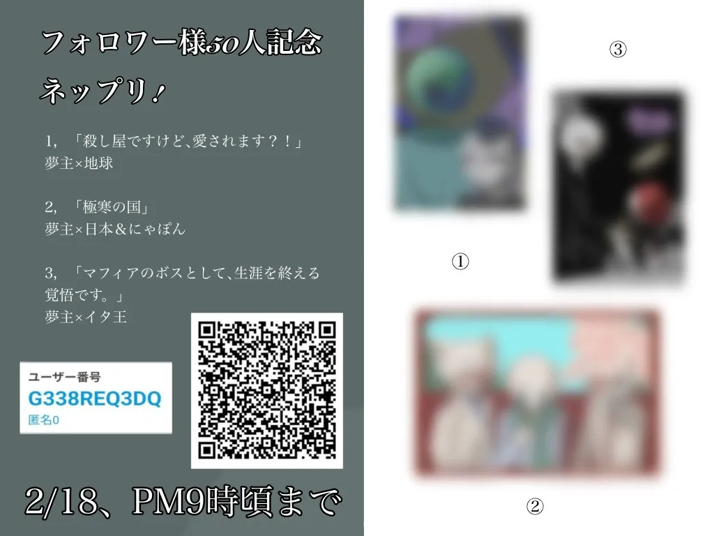 フォロワー様50人記念、お待たせ致しました!!