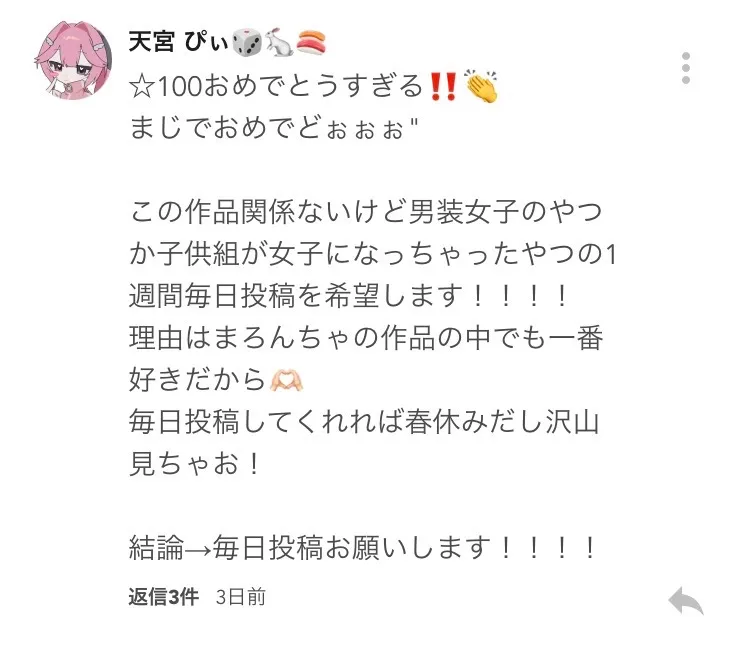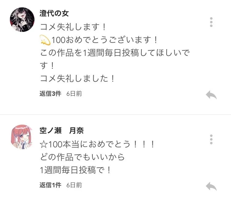 1週間毎日投稿以外なら他も受け付けるので前のところに💬してください!