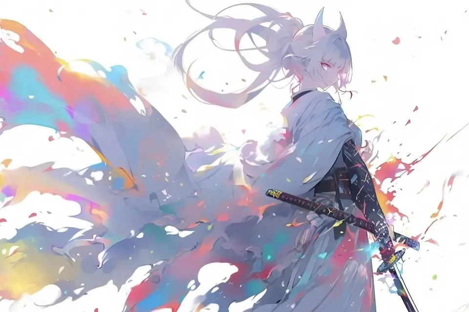 天羽々斬の聖遺物を纏うと持霊の2匹を纏った時とは違う和服の姿となる。