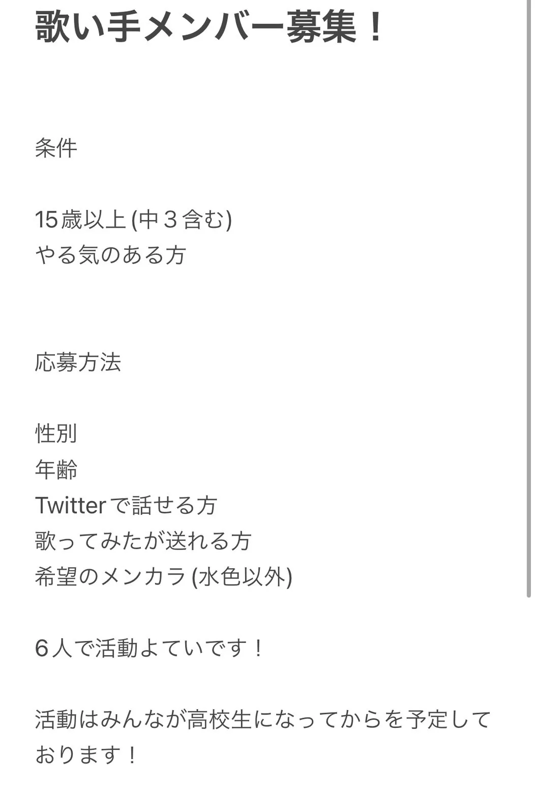 今回は歌い手のメンバーを募集します!