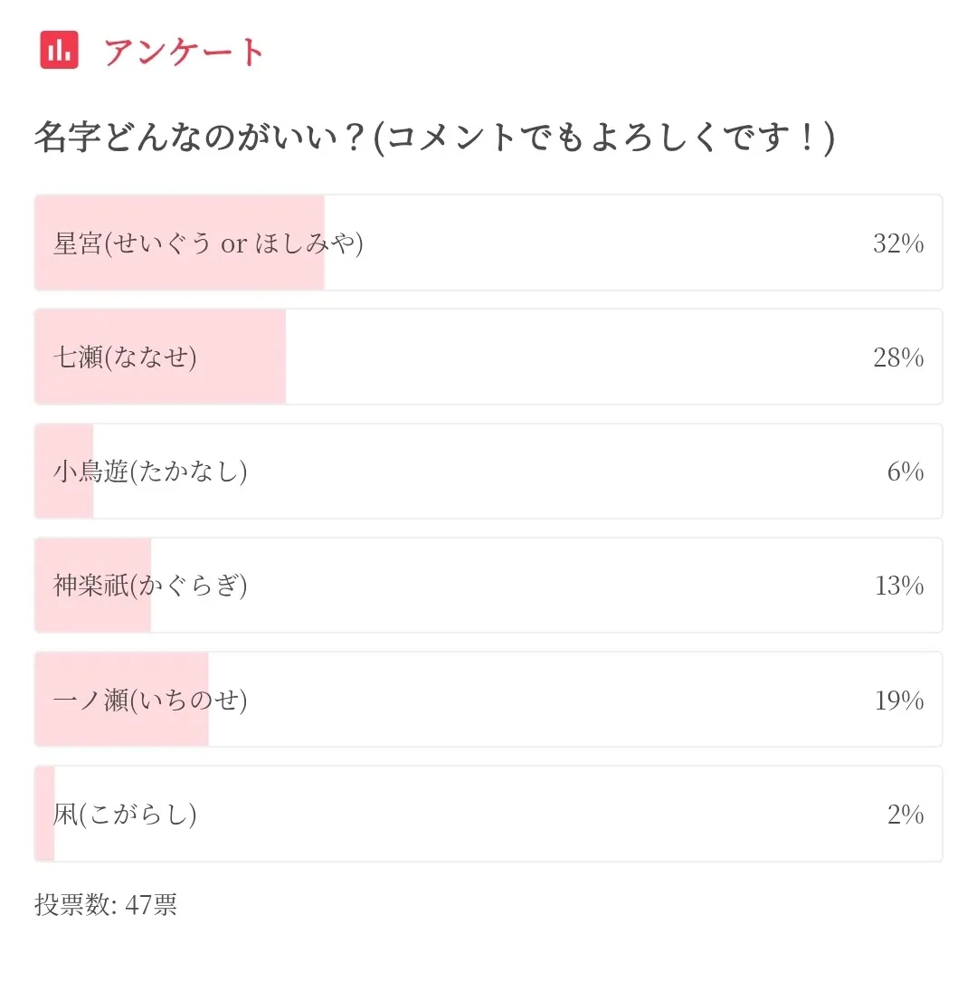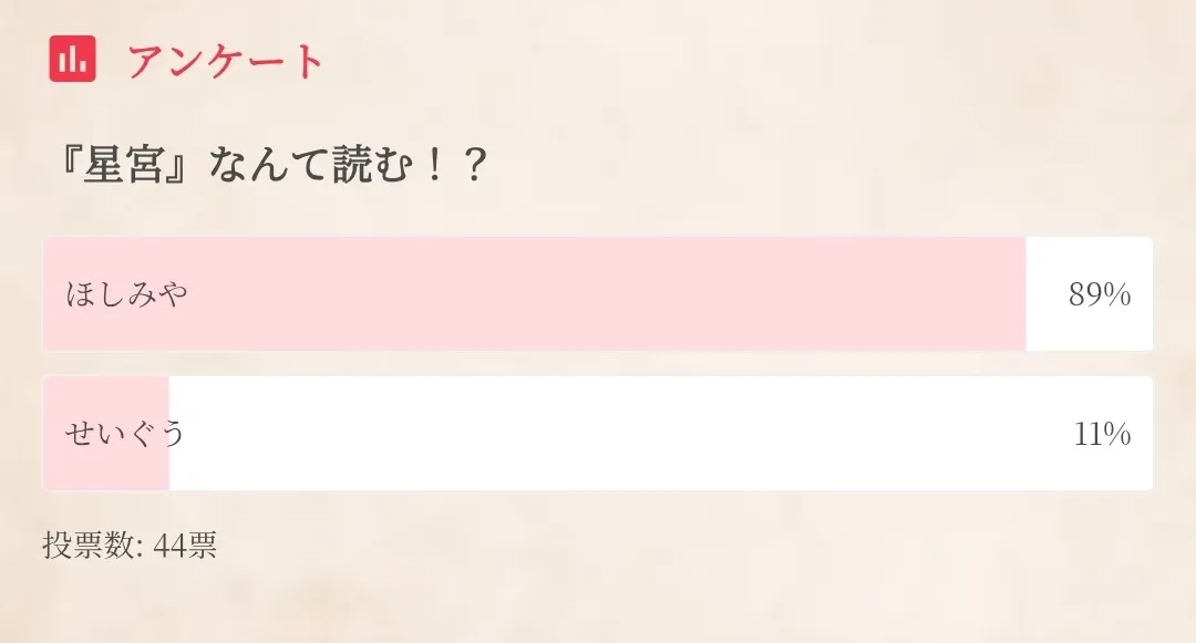 アンケート結果、名字は星宮になりました!