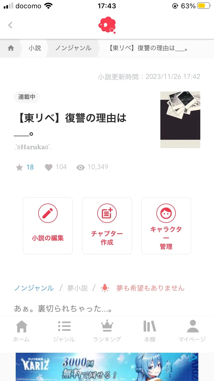 - 小説詳細ページ下部