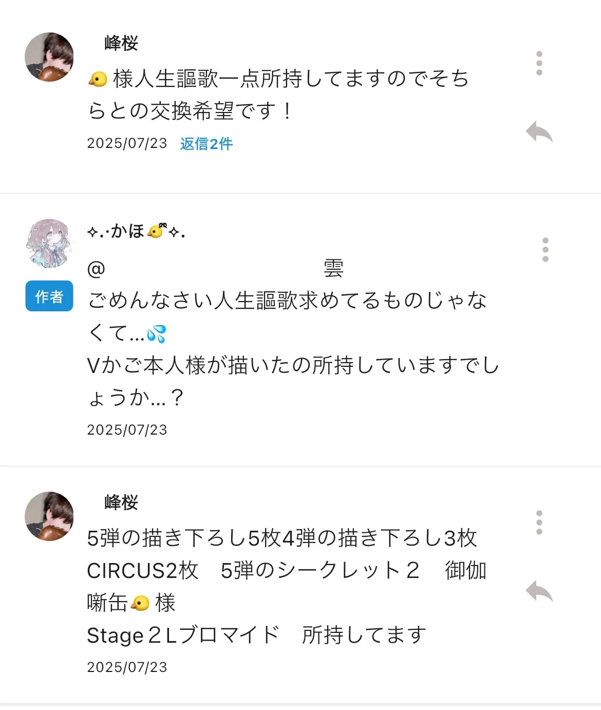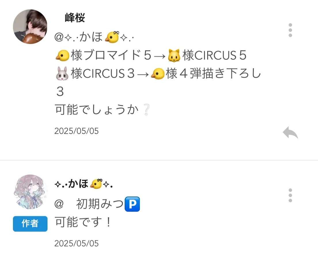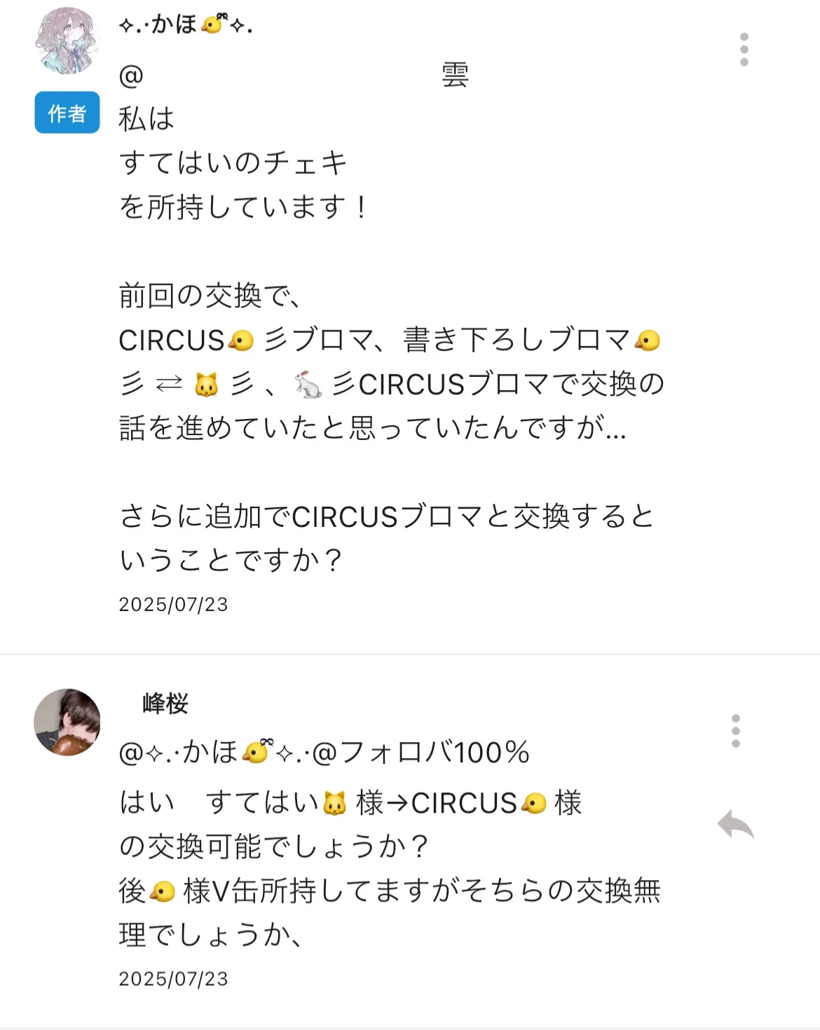 🐱様 CIRCUSブロマ 5 ⇄ 🐤様 CIRCUSブロマイド5