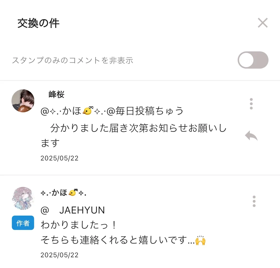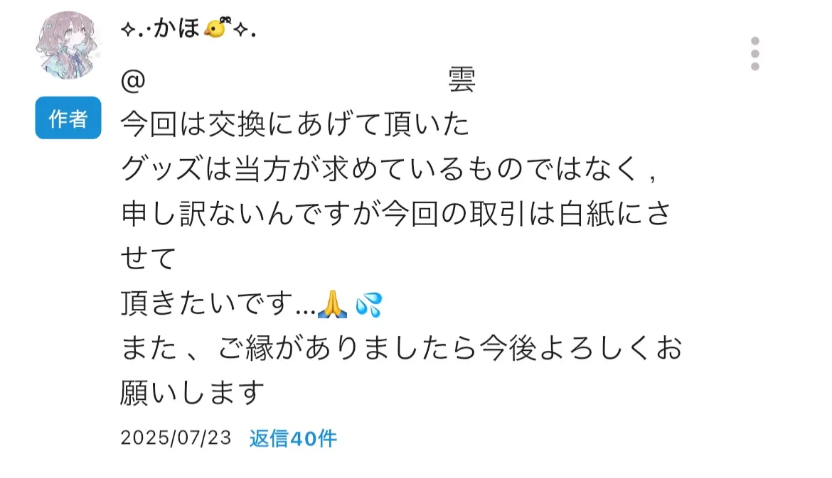 取引をしてくださりありがとうございました。