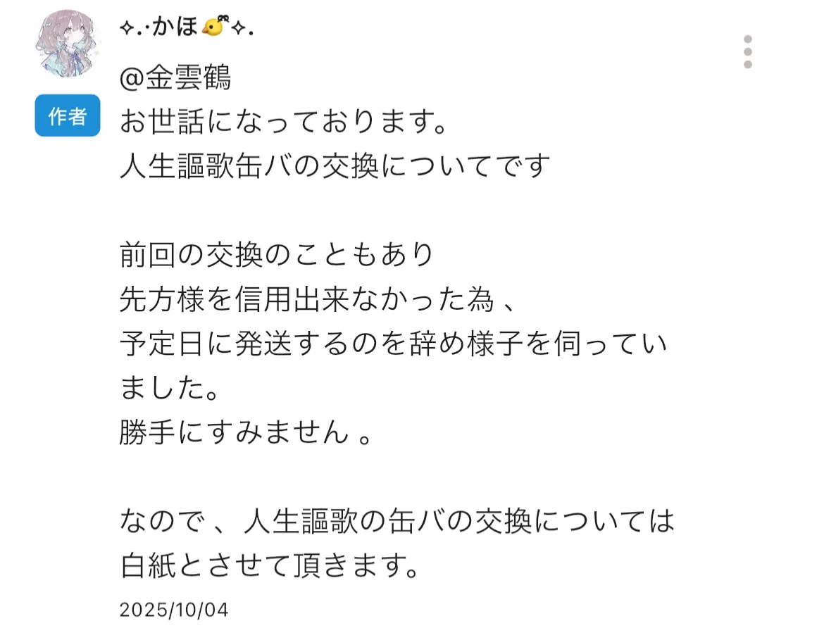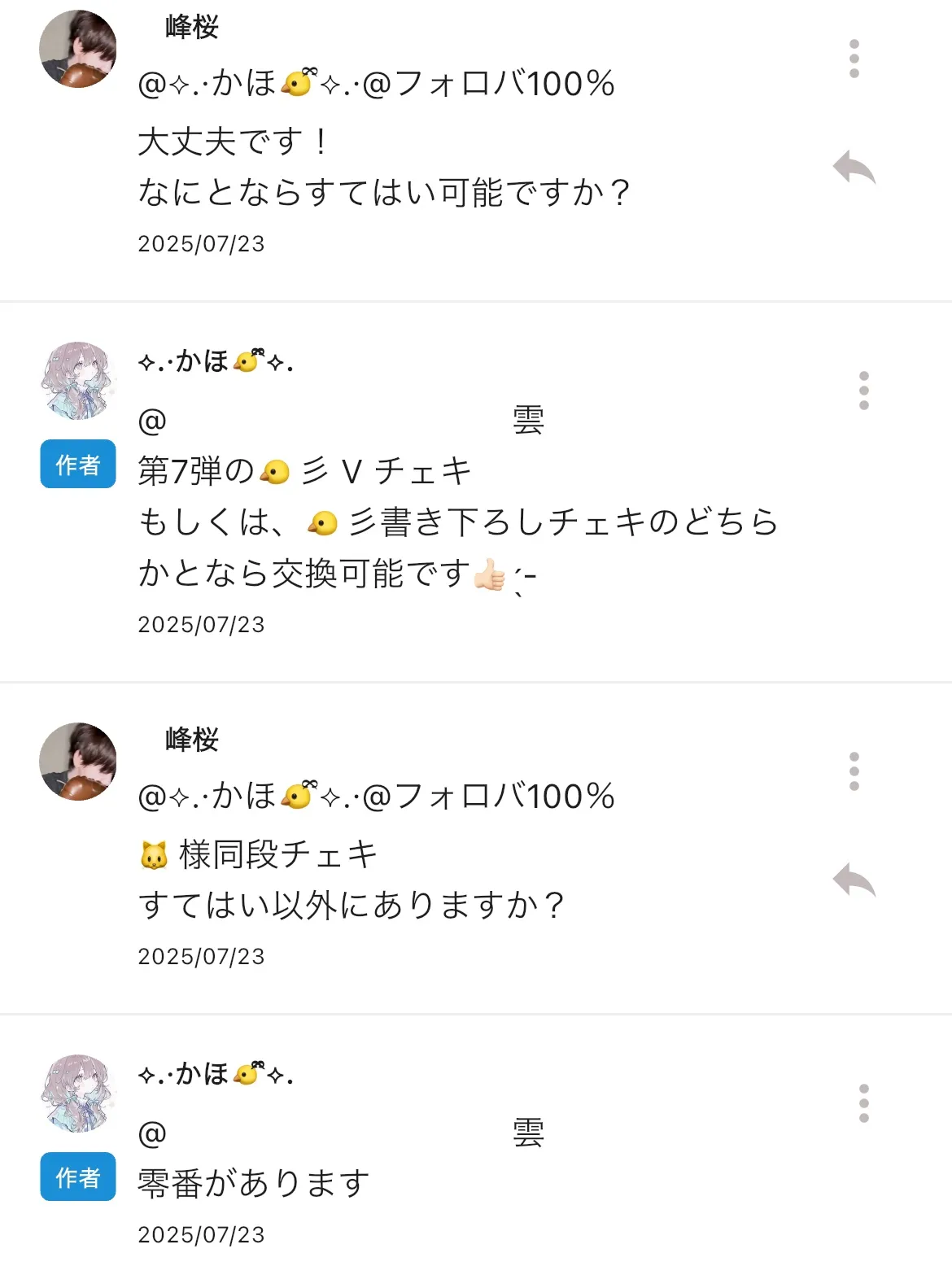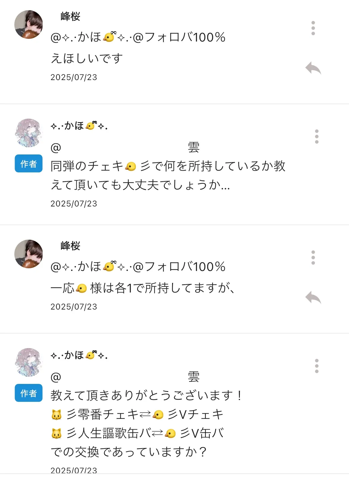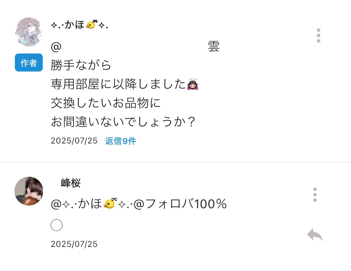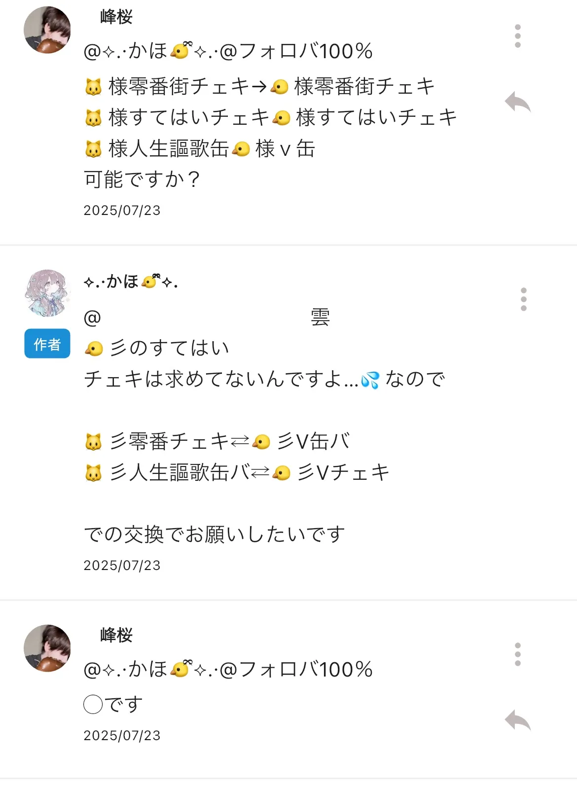 ⬇️ 🐤様の何かと 🐱様すてはい交換の提案