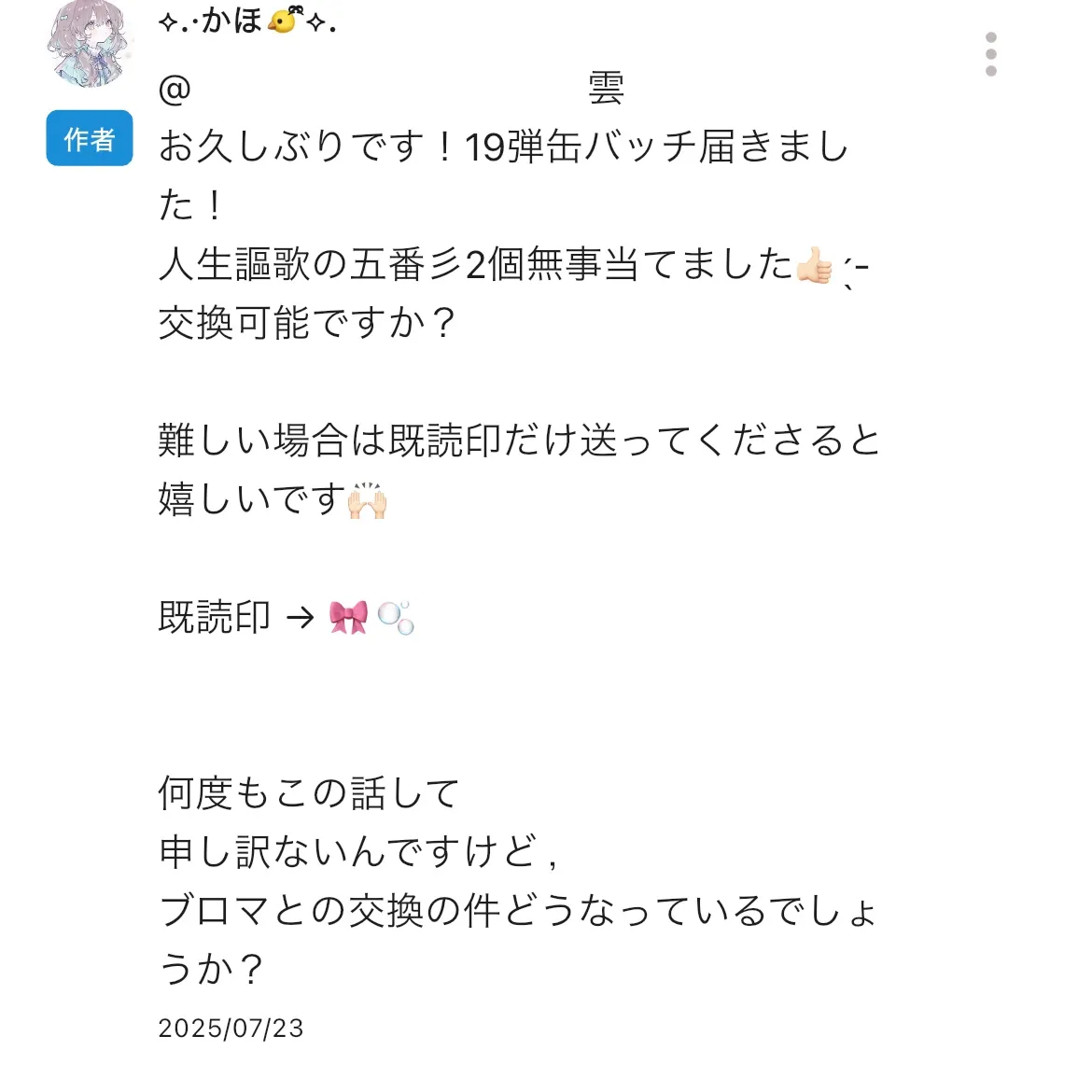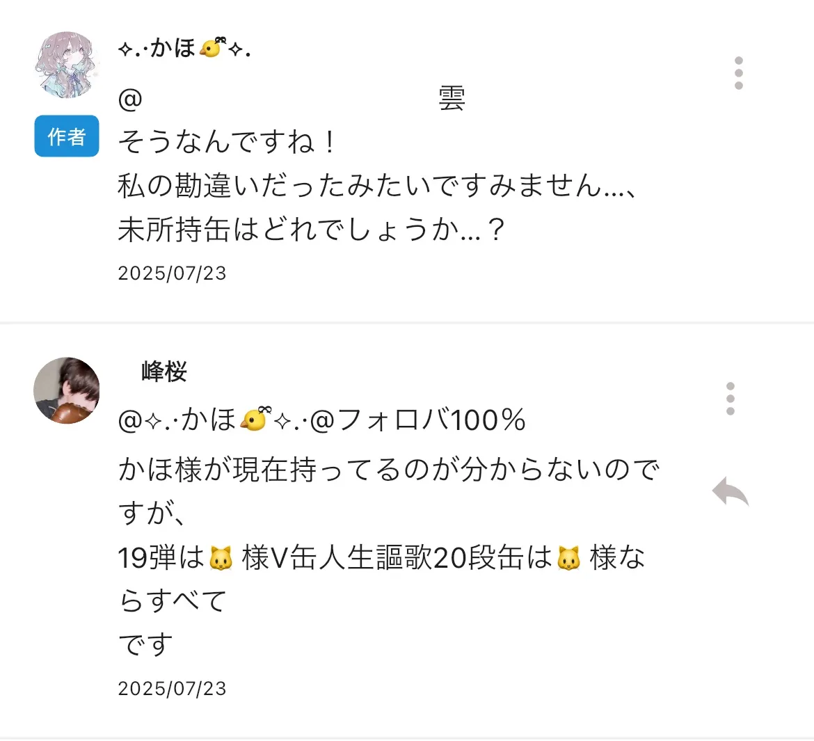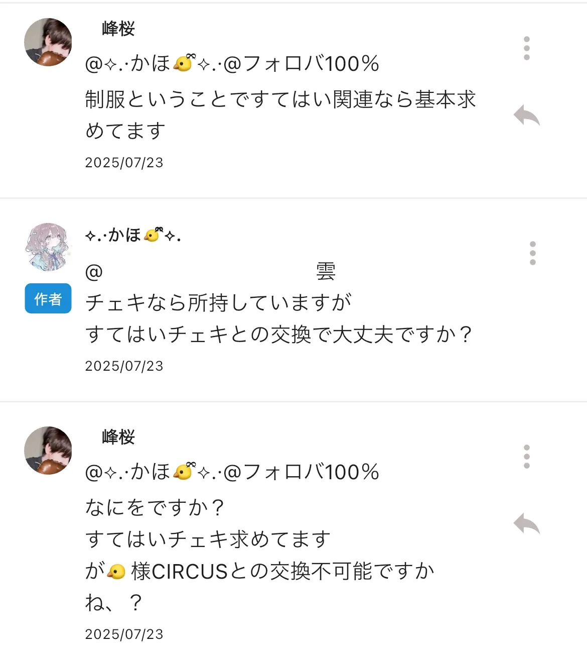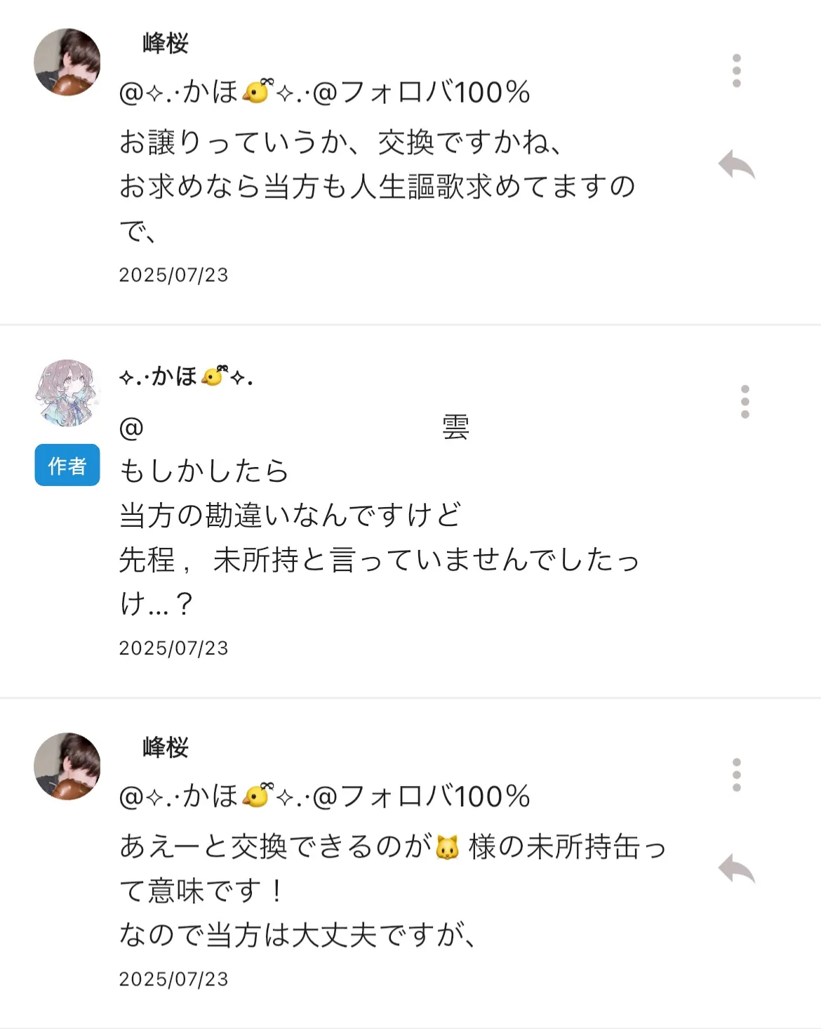 ⬇️ 🐤様の何かと 🐱様すてはい交換の提案
