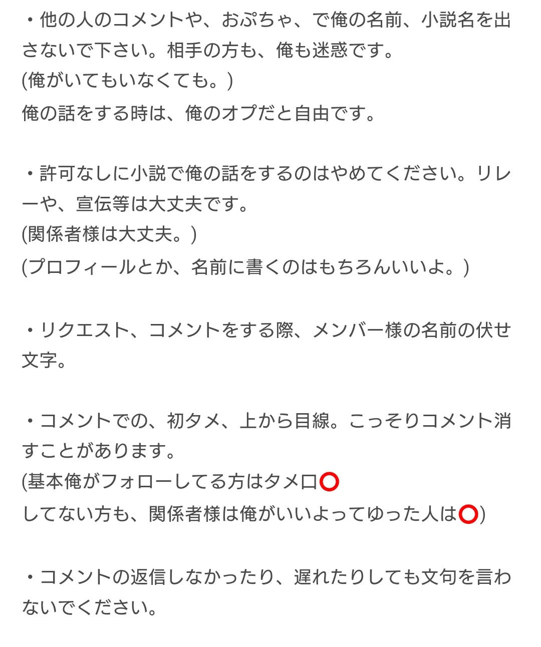 ・メンバー様の名前を伏せてないコメント、リクエストは無視します。