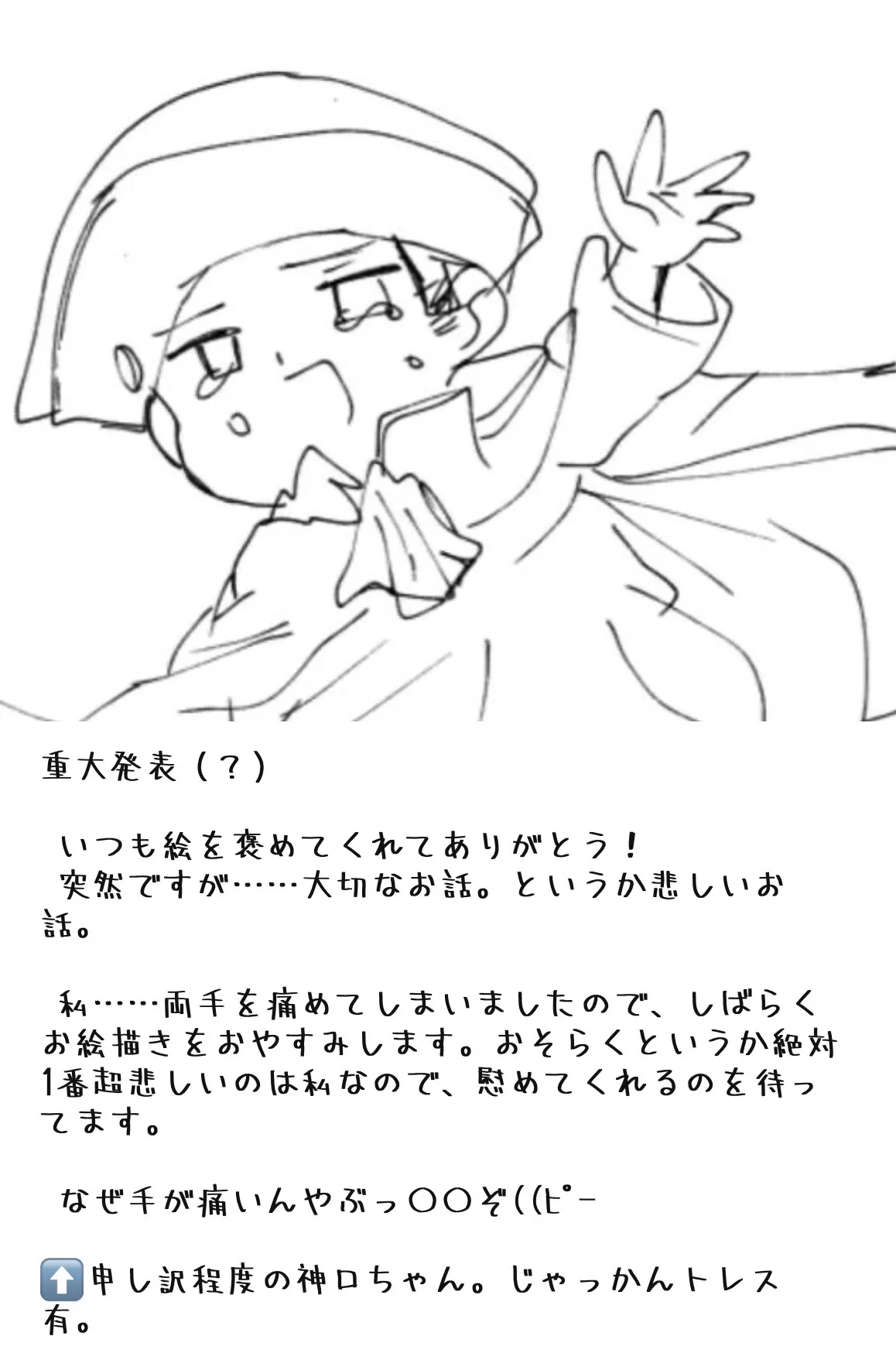 このとおり、しばらく絵をお休みしますので、アイコン絵やリクエストを描くことができません。