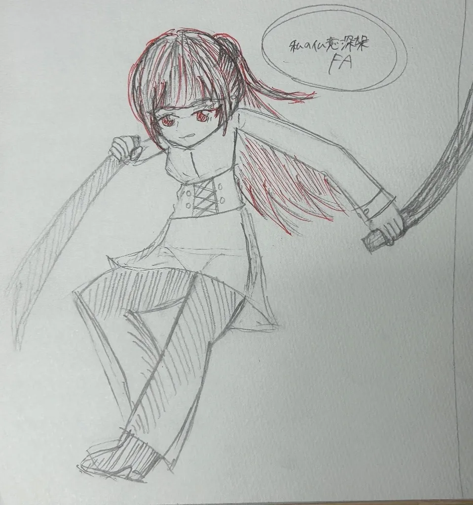 私がよく読ませて頂いてる『私の仏意深架』という小説に出てくる夢主ちゃんの戦闘姿を描かせて頂きました😊