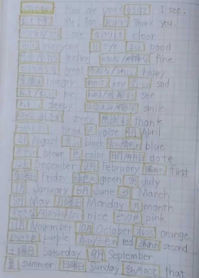 今日は漢字と 、英単語の