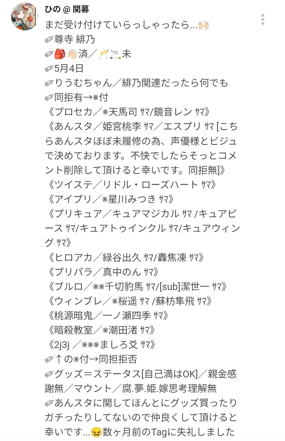同担拒否等把握いたしました🙂‍↕️🙂‍↕️