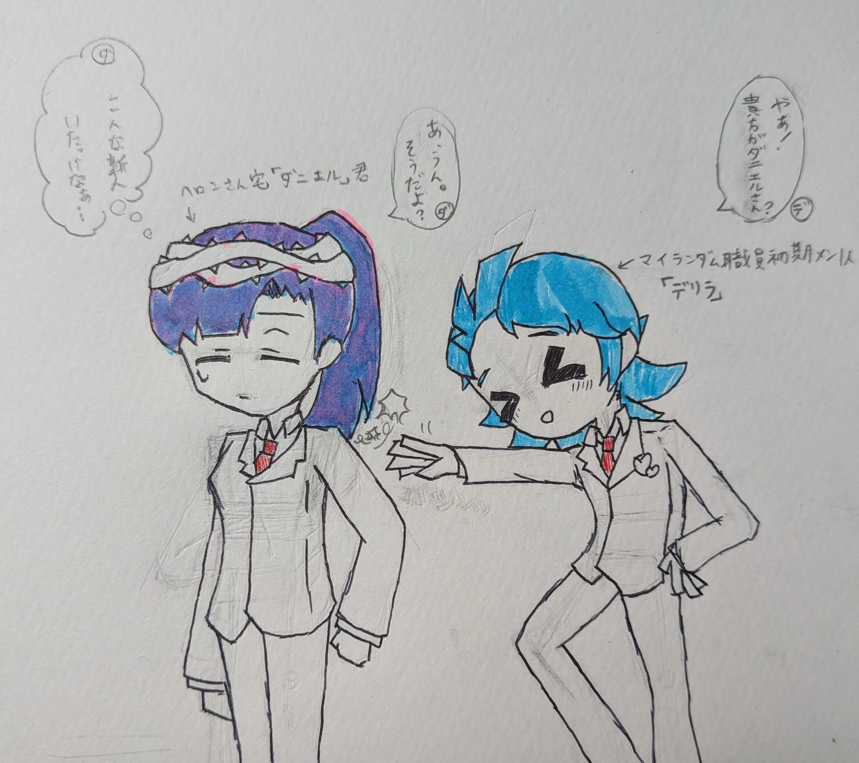 突如現れ馴れ馴れしく話しかけてきたデリラ君に、冷静にこんな職員居たか考えてるダニエル君なのでした…