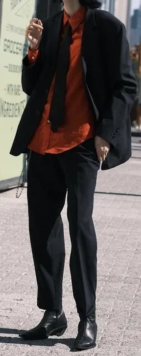 こんな感じで中のシャツはオレンジの黒スーツです!