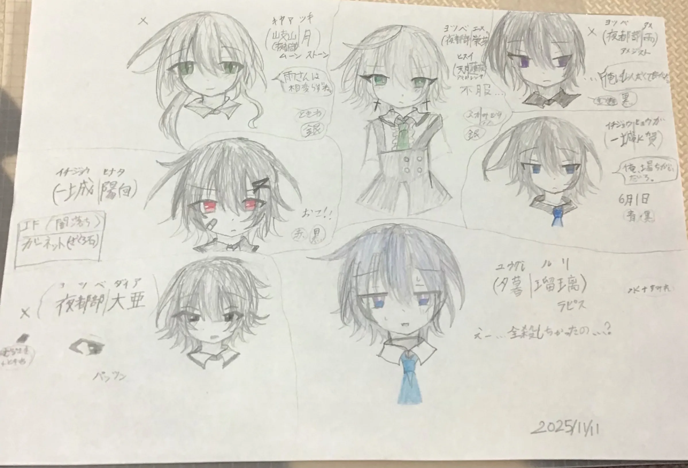 昼ノ 利亜 (白髪「銀髪」暗いところだと水色に見える、水色の目。髪が短いからか、男性だと勘違いされる。イケメン女子。夫は、一城星月)ツリ目。