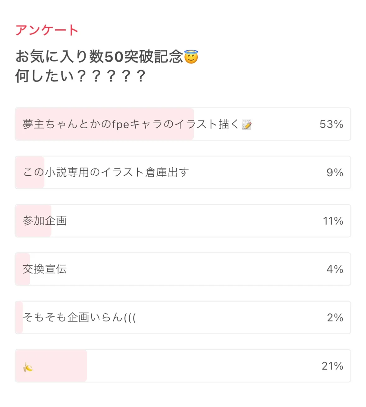 前に行った現時点でのアンケート結果です