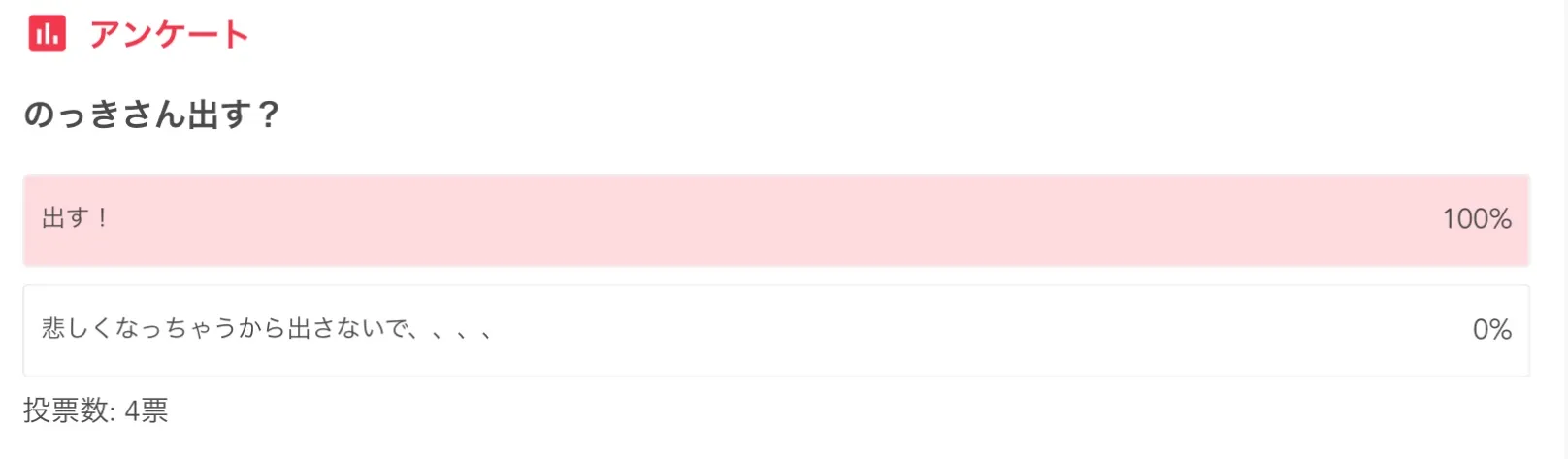 あとのっきさん出すかどうかのアンケートの結果ですが・・・