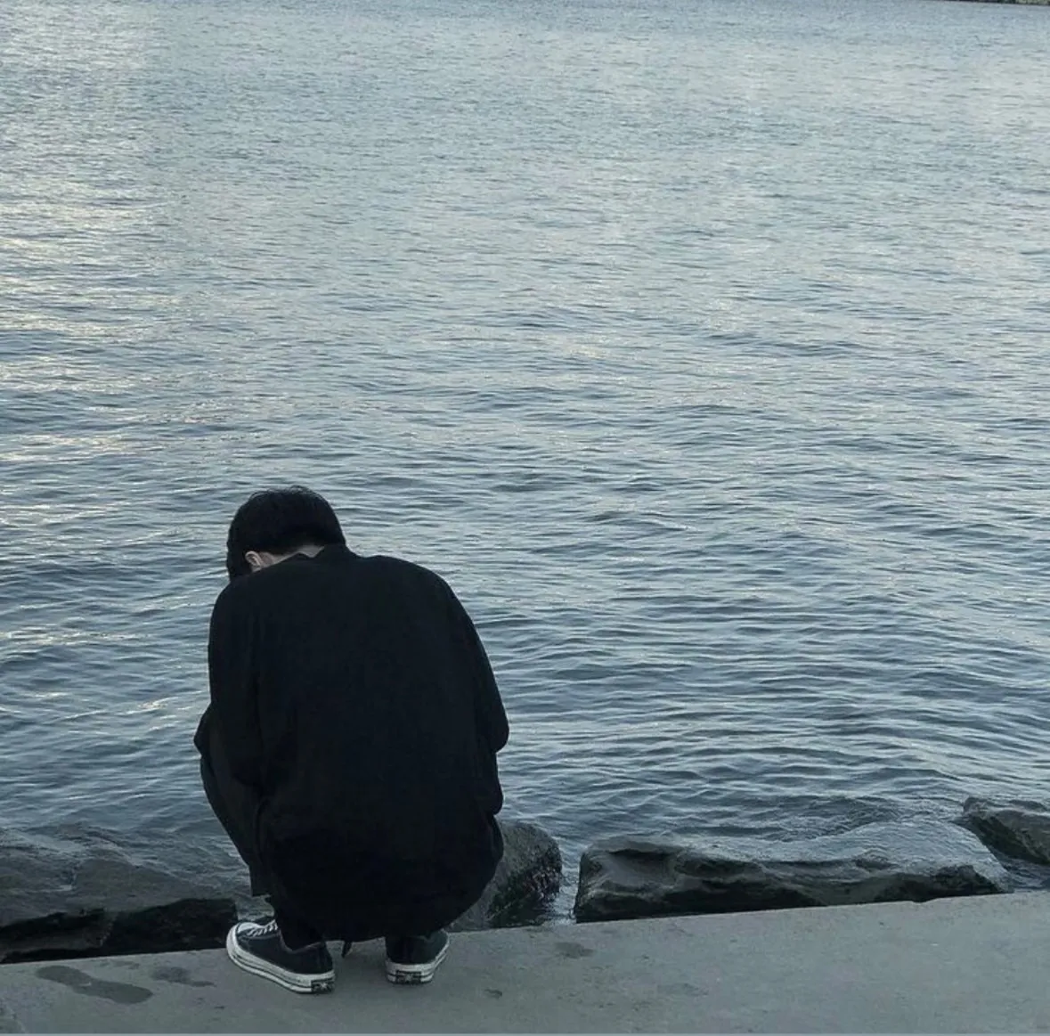 仕事の帰りに海によって海の水ん中みてるやつ