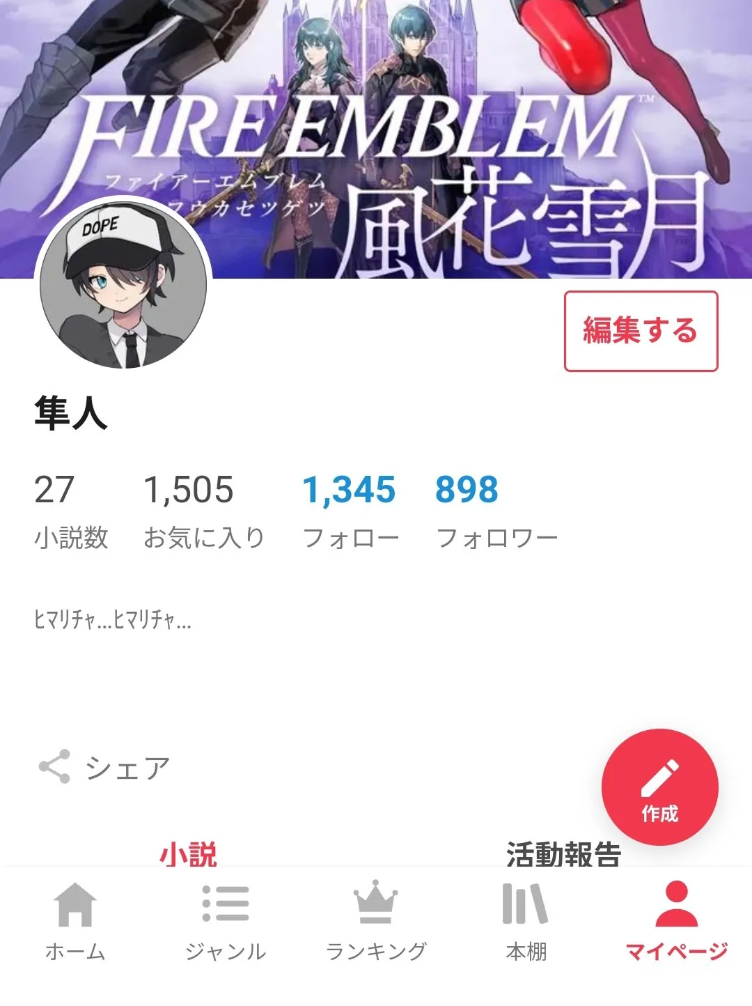小説の裏話だとか! 投稿云々(言い訳)だとか! 雑談だとか! たまに自慢やら作者の秘密だとか!! ブーケさん彷彿活動報告タイトルで書いちゃう! イラスト投下することもあるかも🖌️🎨 相互限定にしようかとも思ったけれど かつての私と同じようなWEB勢の私のファンのために全体にしておこう なんて優しいんだ私は。 ファンがいるかはさておき😘 そもそも相互の幅緩めよね! いつかアプリ入れた暁には小説全話いいねしてね😽 最近投稿無いな〜とか思ってらしたら見に来てくださいな! お気に入りしてって確認してって⭐️