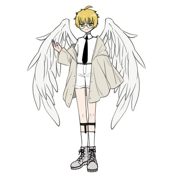 俺は、全体的に黒の反対の白で、黄色髪に緑目です!