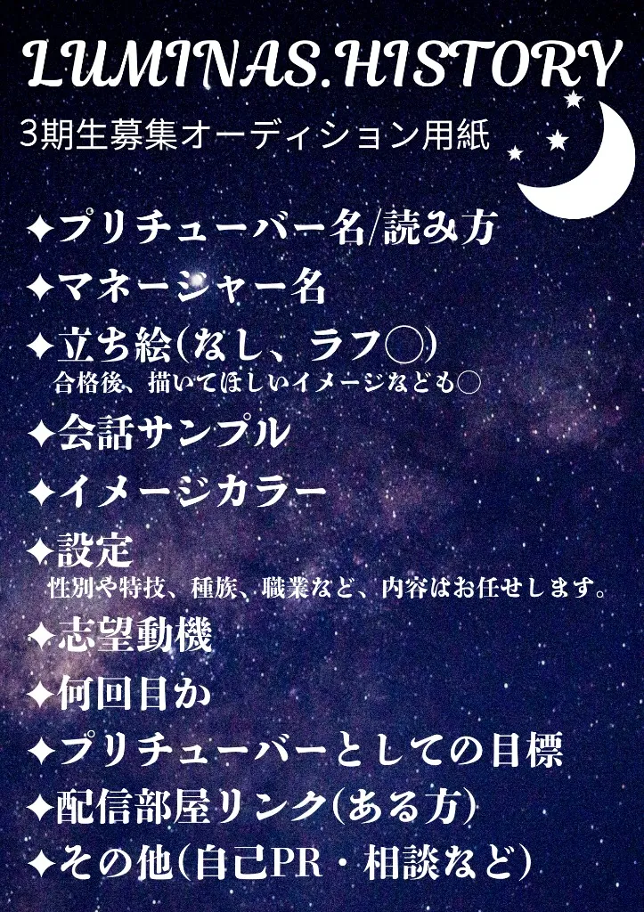 ______________________________ fm − 🦓🚨 fn − 一般市民 fa − まっしろぎぬりえ ______________________________ 立ち絵 − 自作 表紙絵 − 〃 ______________________________ スカウト・挨拶回りは”初配信” のチャプターにてお願いします。 (お断りする可能性あり) 頂いたファンアートは活動に 使用する場合があります。