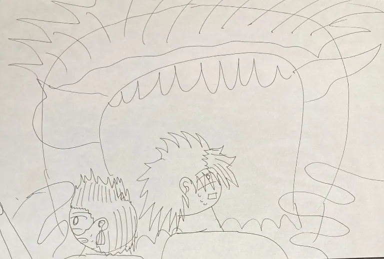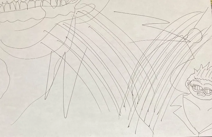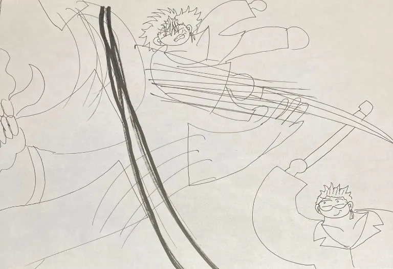 半間は疱瘡神の両腕を切断する