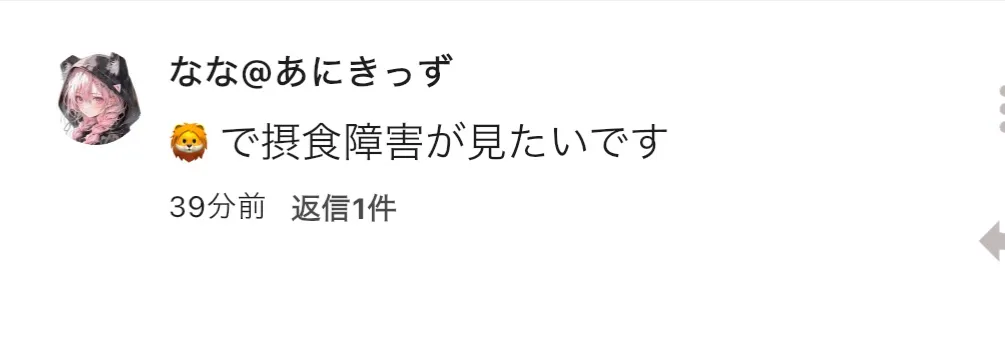 あんまり病院には行ってないらしくて、1週間前に状態が結構やばかったから、病院に行った結果、摂食障害と言われたらしい
