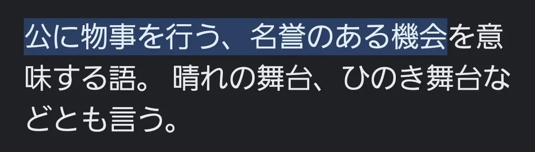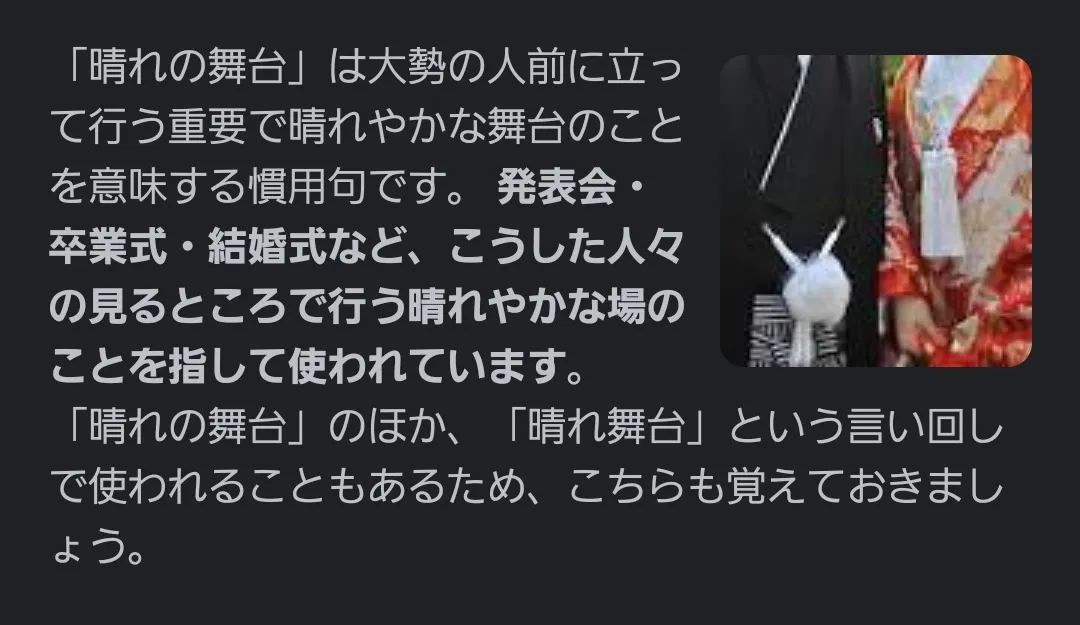 晴れ舞台の意味、調べてきて!